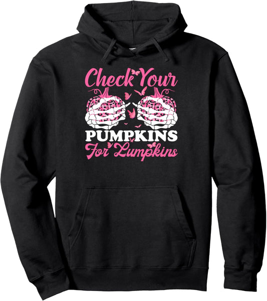 Check Your Pumpkins Breast Cancer Awareness Shirt Halloween Pullover Hoodie