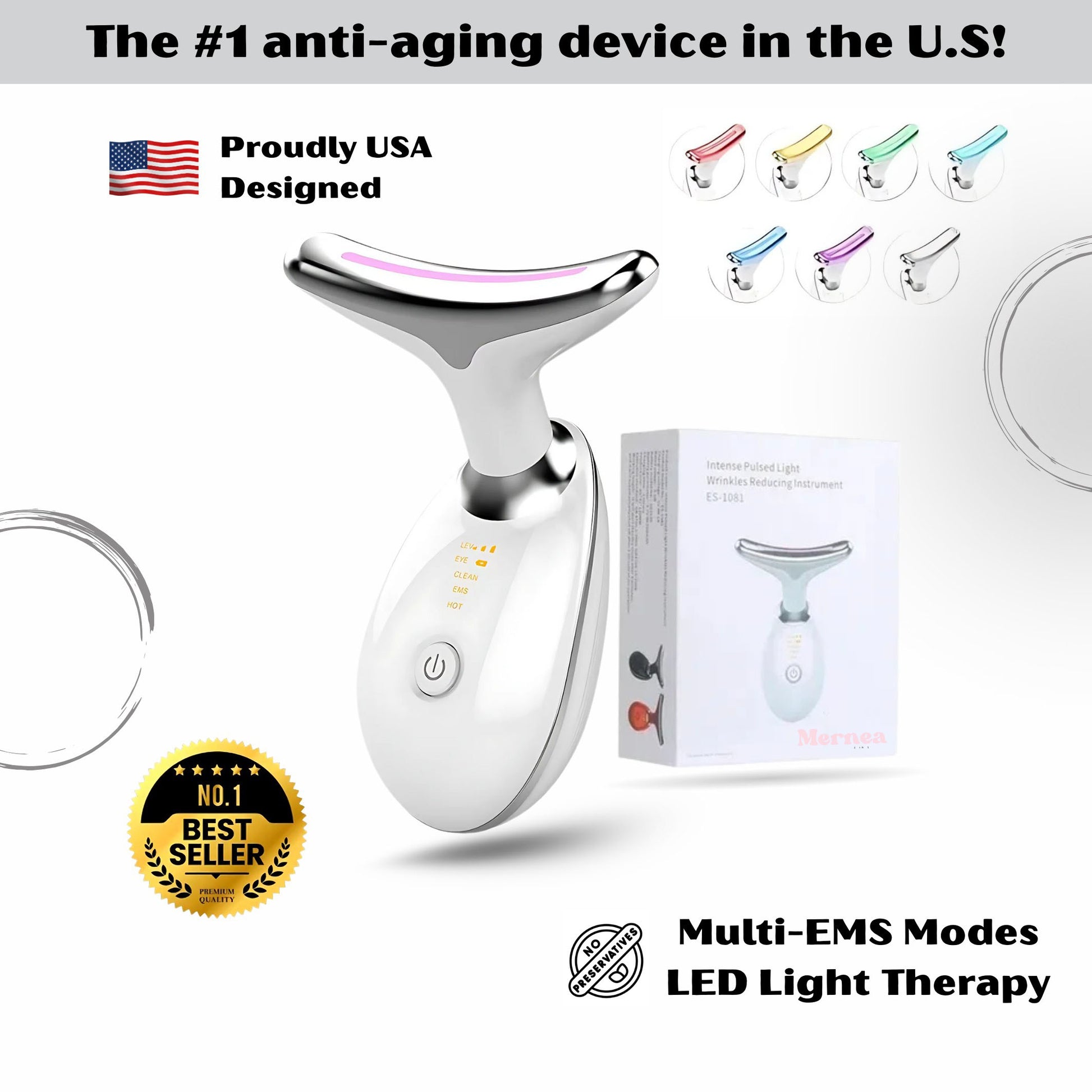 Numerous studies support the effectiveness of EMS, red light therapy, blue light therapy, and infrared heating — all of which are featured in the 7 Color LED Facial Massager and have shown positive results.