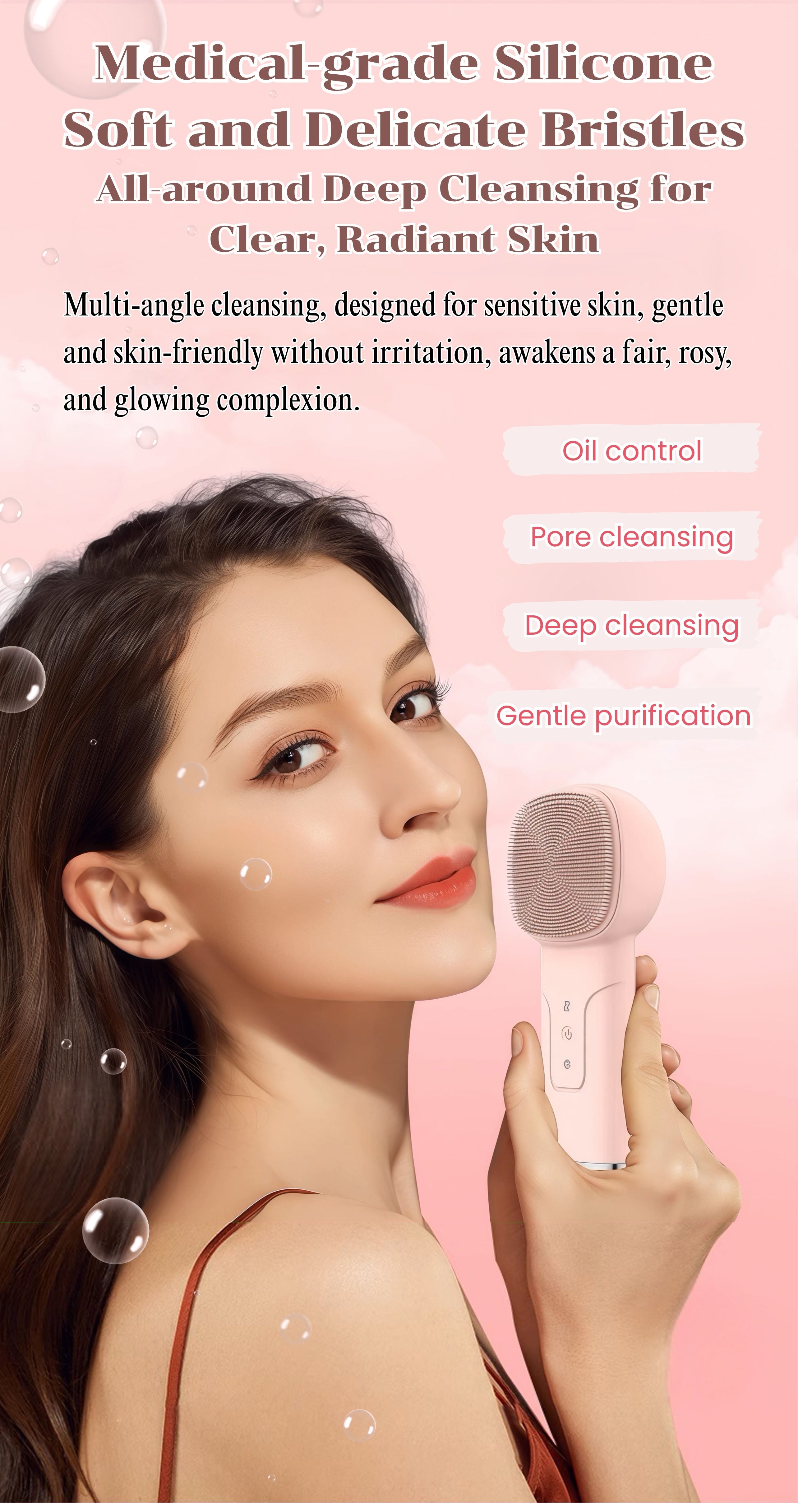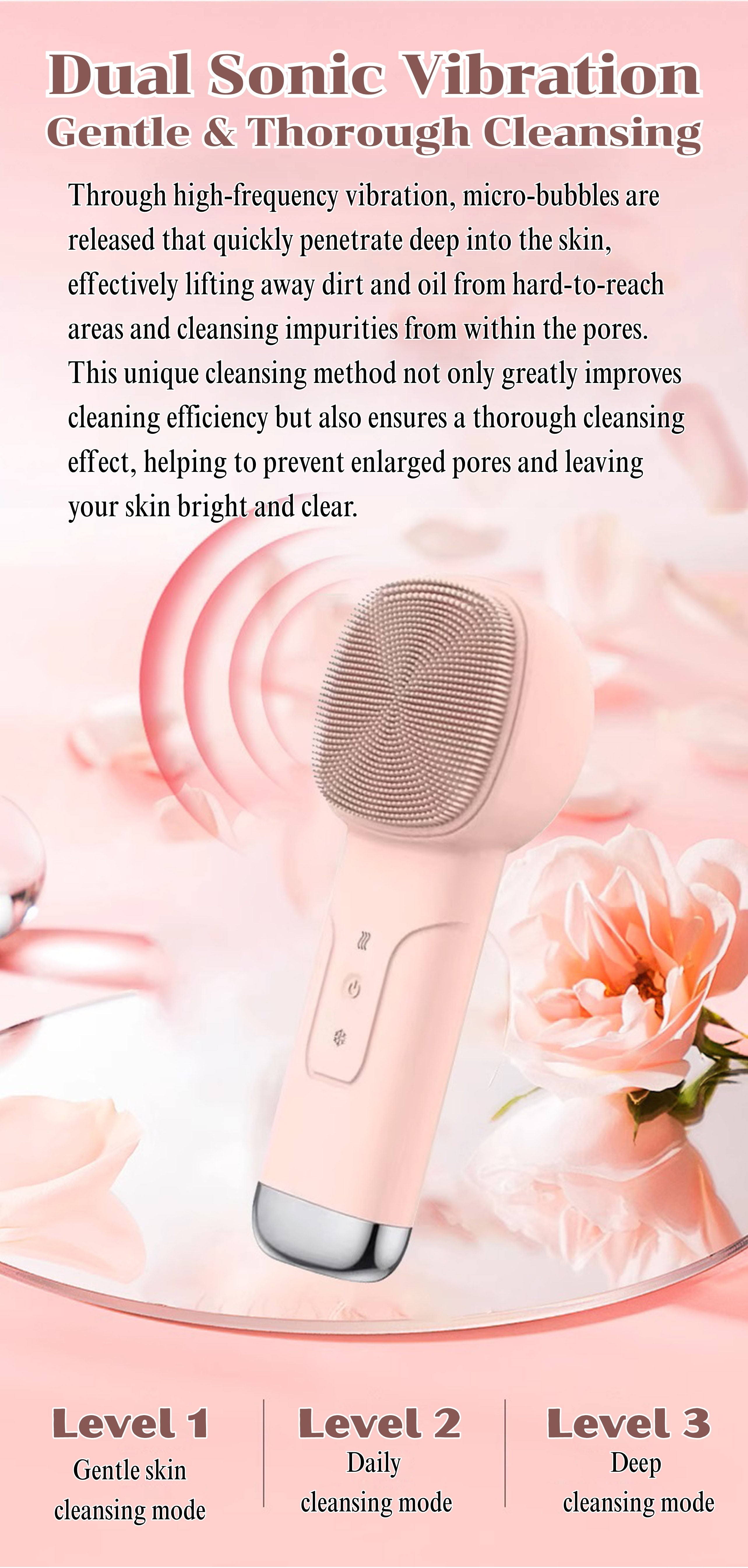 To clean the device, simply wipe it down with a damp cloth after each use. Ensure that the silicone bristles are thoroughly cleaned, and avoid submerging the device in water to protect the internal components.